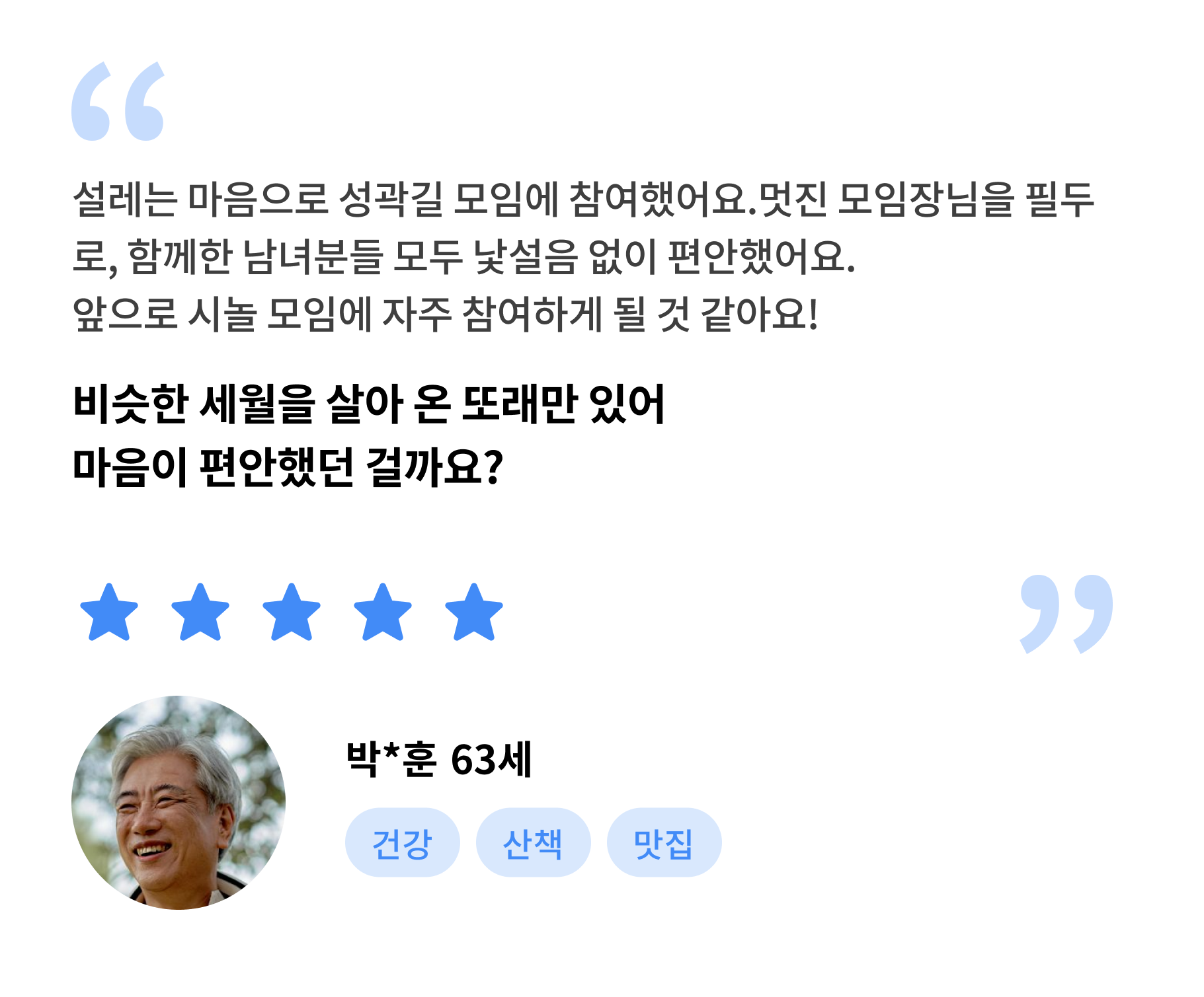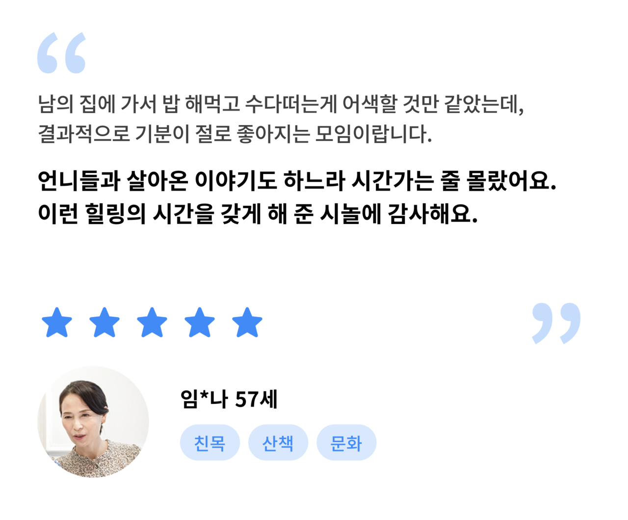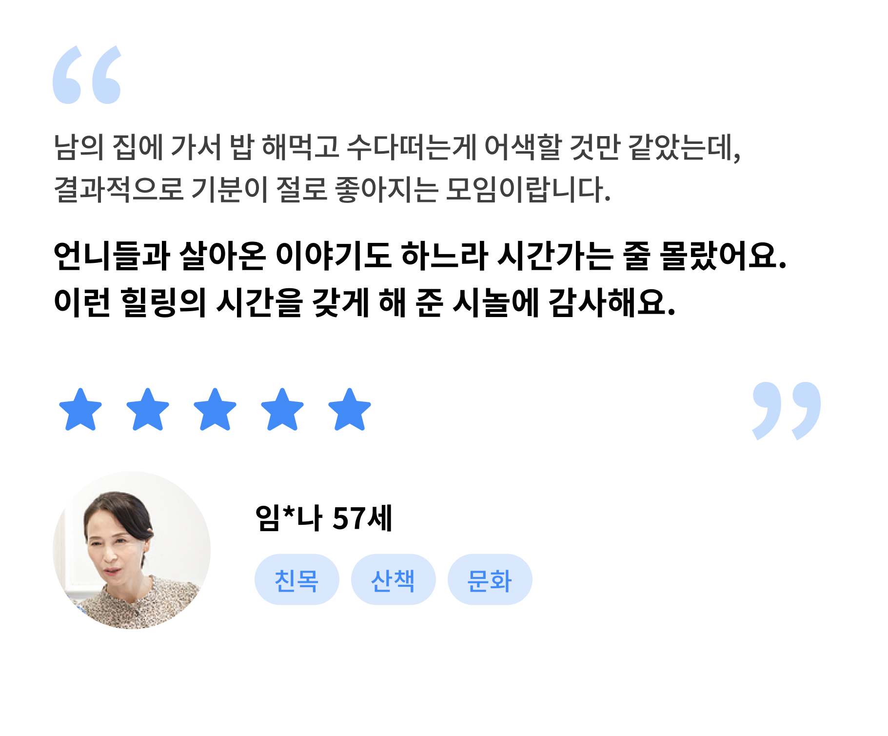 비슷한 세대를 살아 온 우리만의 모임 찾기