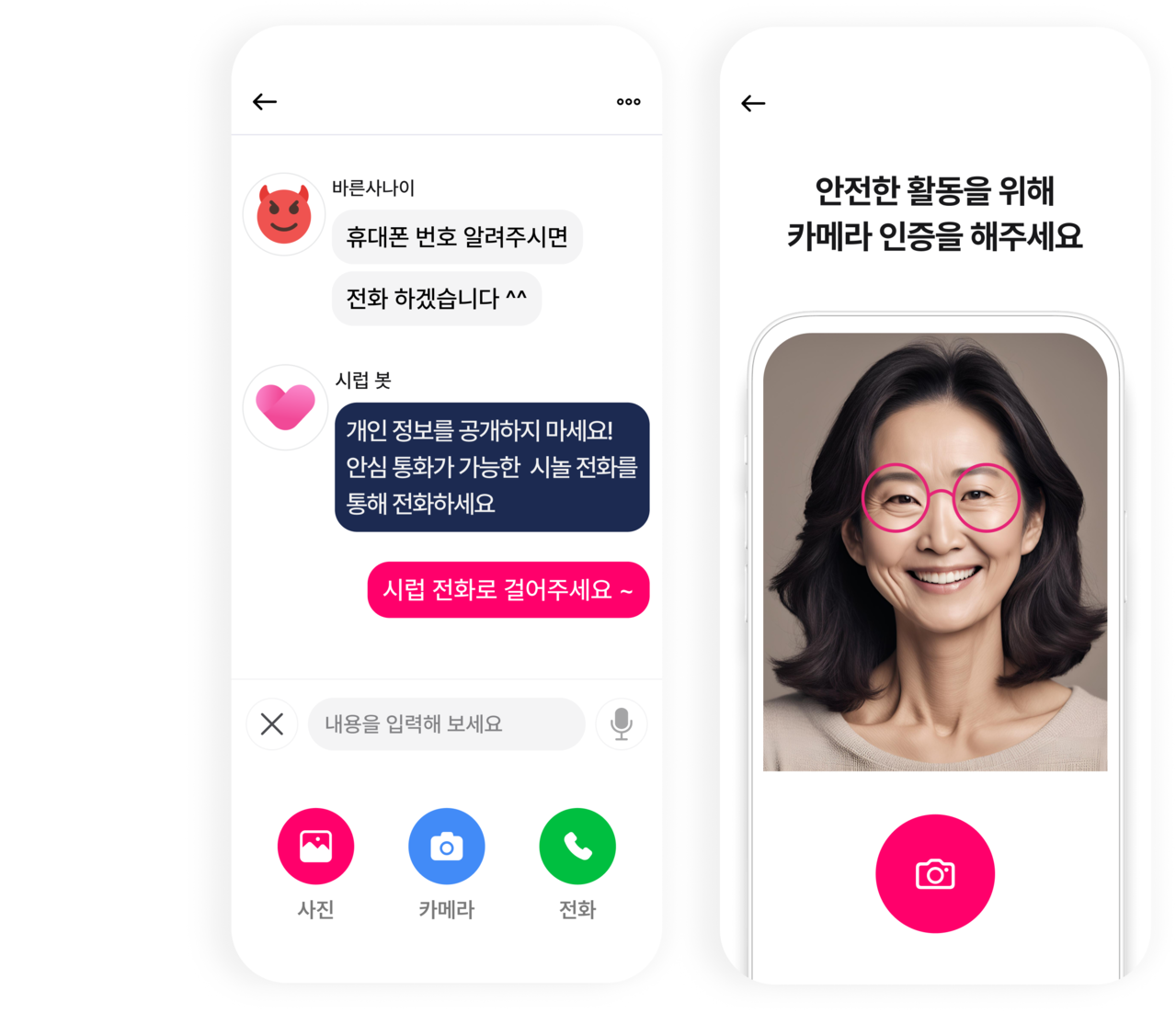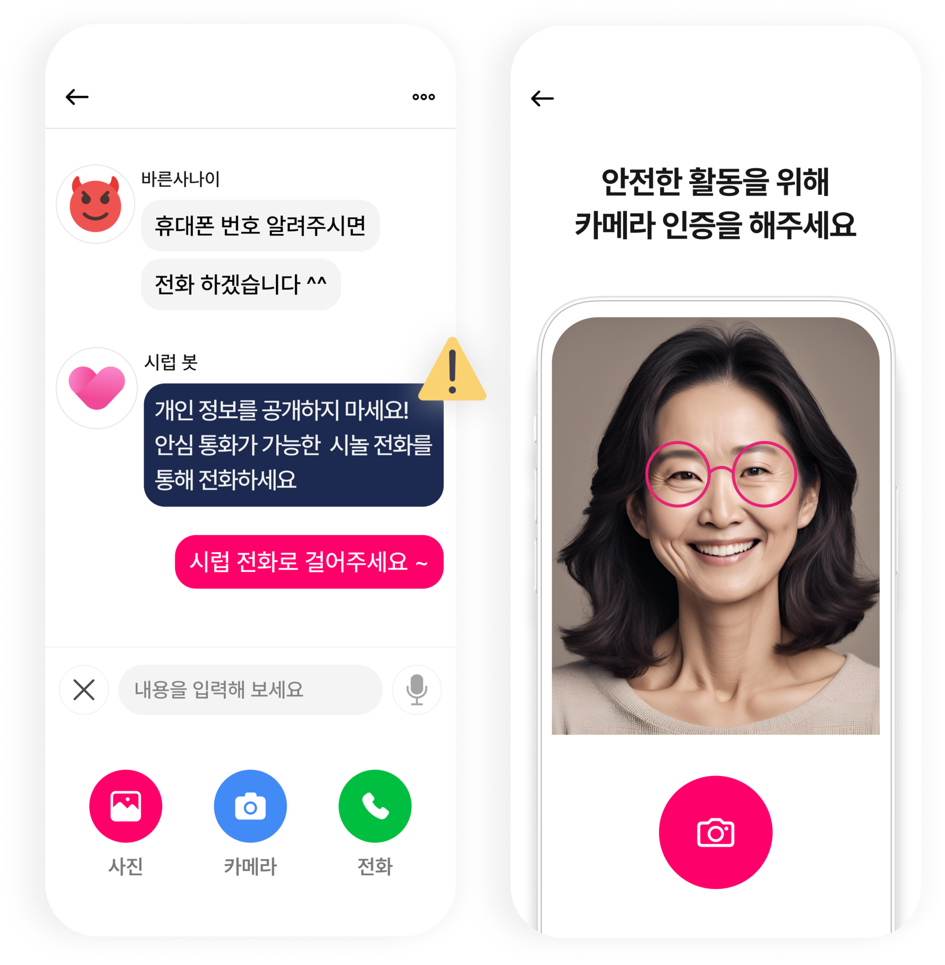 *시럽에서는 로맨스스캠·피싱 등을 일삼는 악성 이용자를 차단하는 5중 AI '여성안심' 기능을 도입하였습니다.