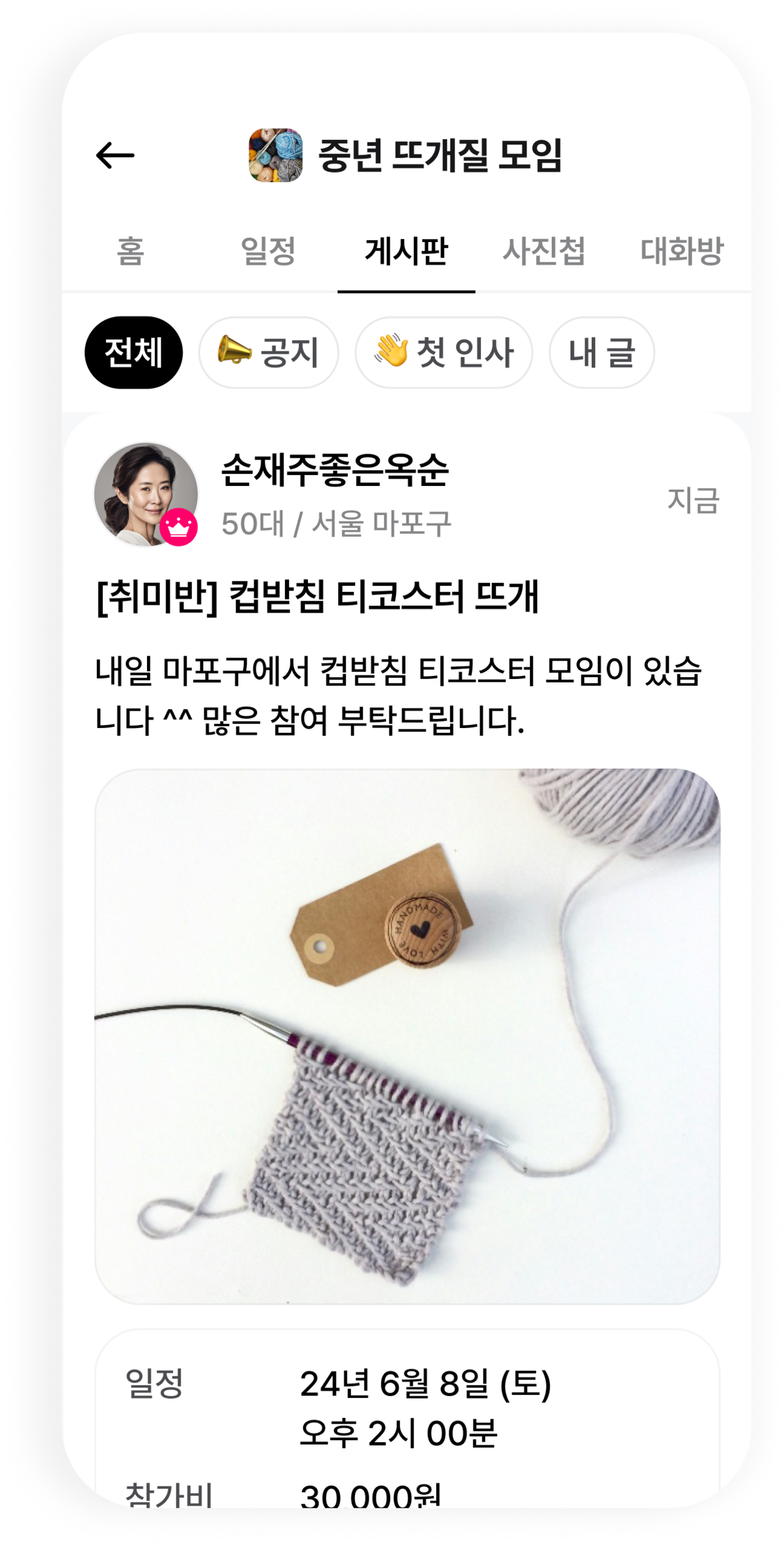누구나 원하는 주제의 모임에 쉽게 가입하고,